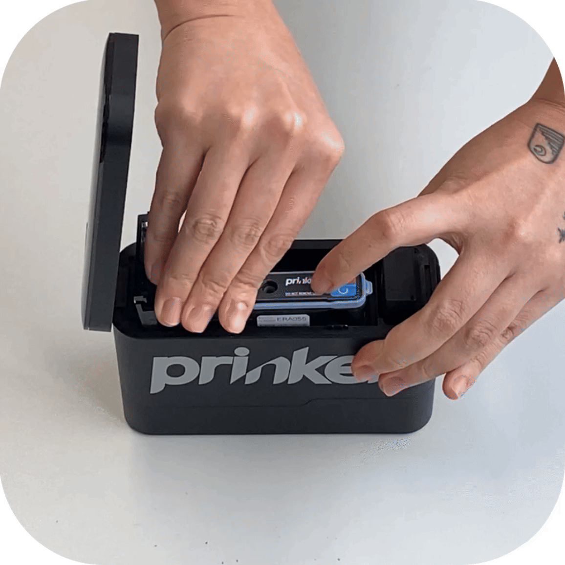 افتح غطاء جهاز Prinker S الخاص بك بعناية.