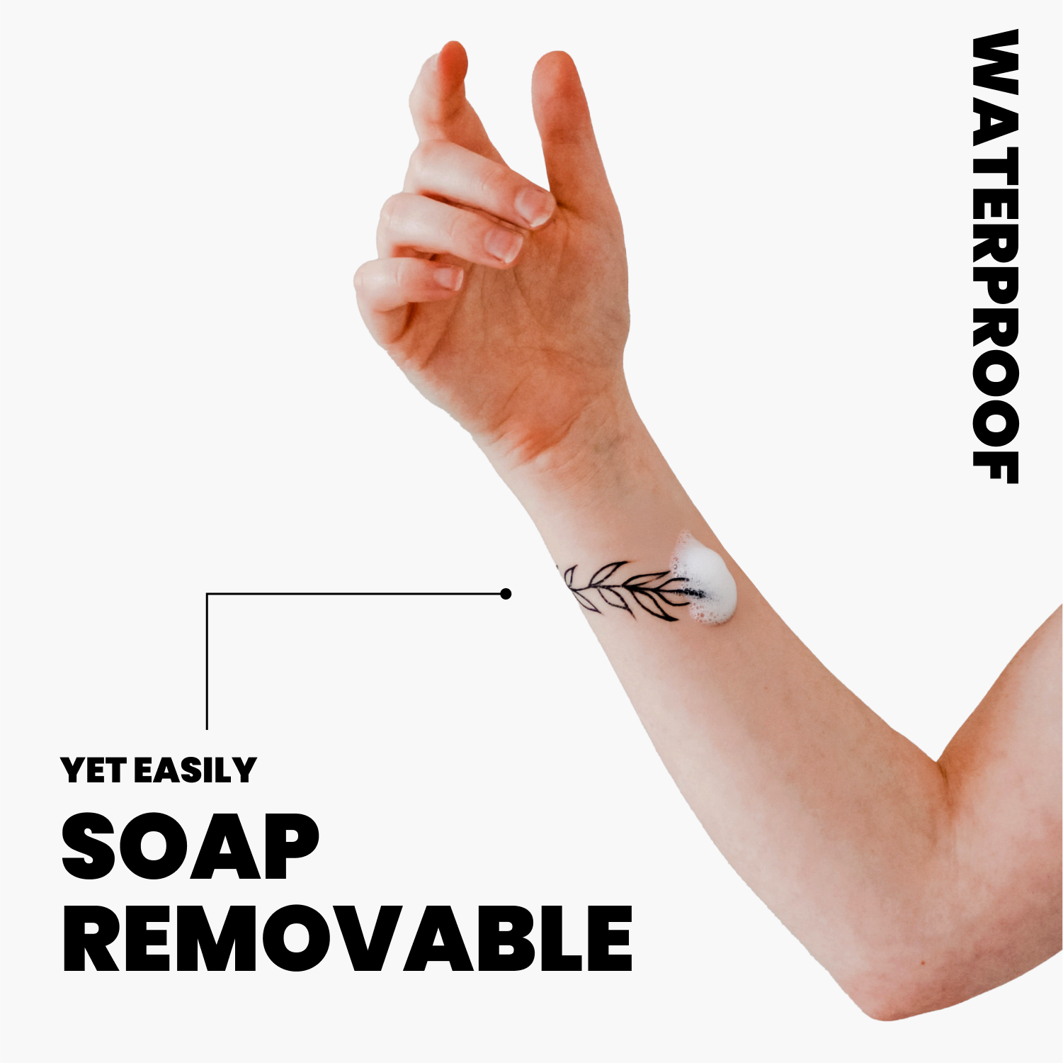 عند استخدامه مع برايمر البشرة الخاص بنا، تكون النتيجة عبارة عن وشم مؤقت مذهل، مقاوم للتلطخ والماء ويدوم طوال اليوم ولكن يمكن إزالته بسهولة بالماء والصابون فقط.